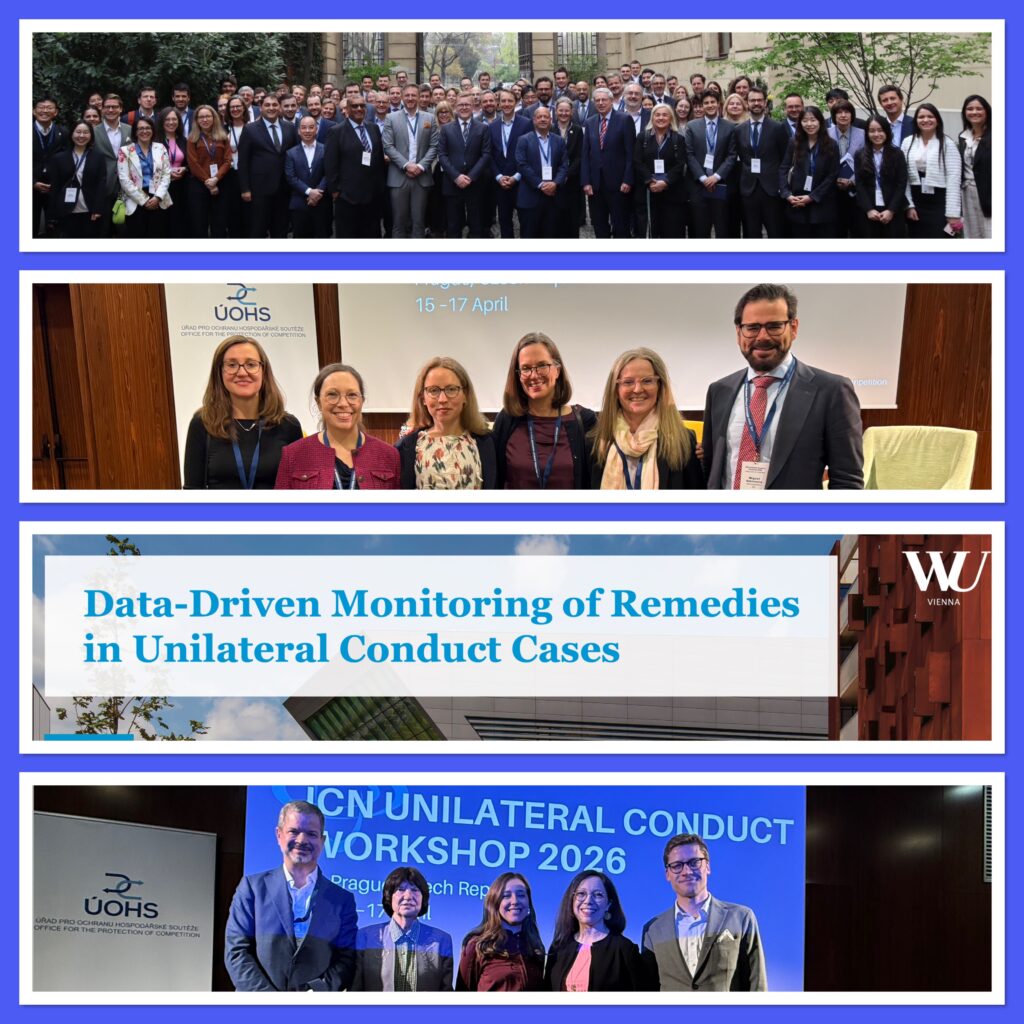 At the 2026 ICN Unilateral Conduct Workshop in Prague (15 to 17 April 2026), Vicky Robertson joined the delegation of the European Commission as a Non-Governmental Advisor to DG COMP. The delegation was comprised of Vera Pozzato, Cristina Sjödin, Ligia Dorobantu (all DG COMP),and the NGAs Anne C Witt (EDHEC), Miguel Odriozola (Clifford Chance) and Vicky Robertson (WU Vienna & CLH). The Workshop was hosted by the Czech Competition Authority UOHS.